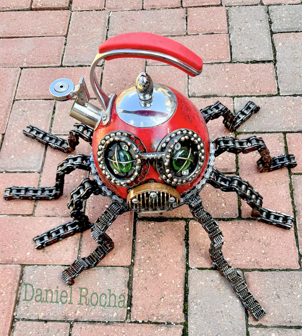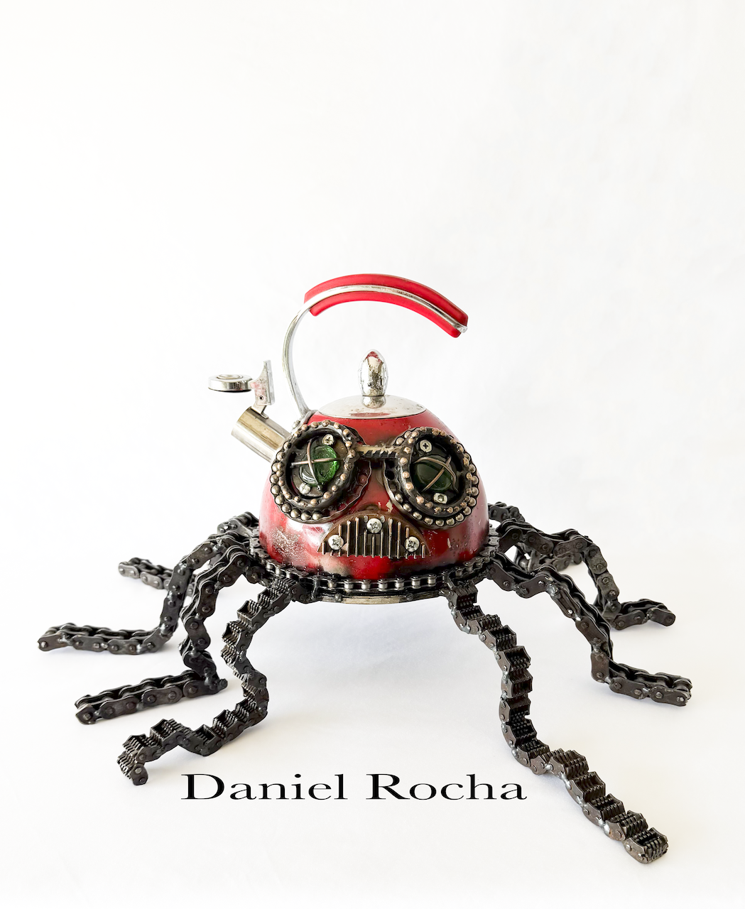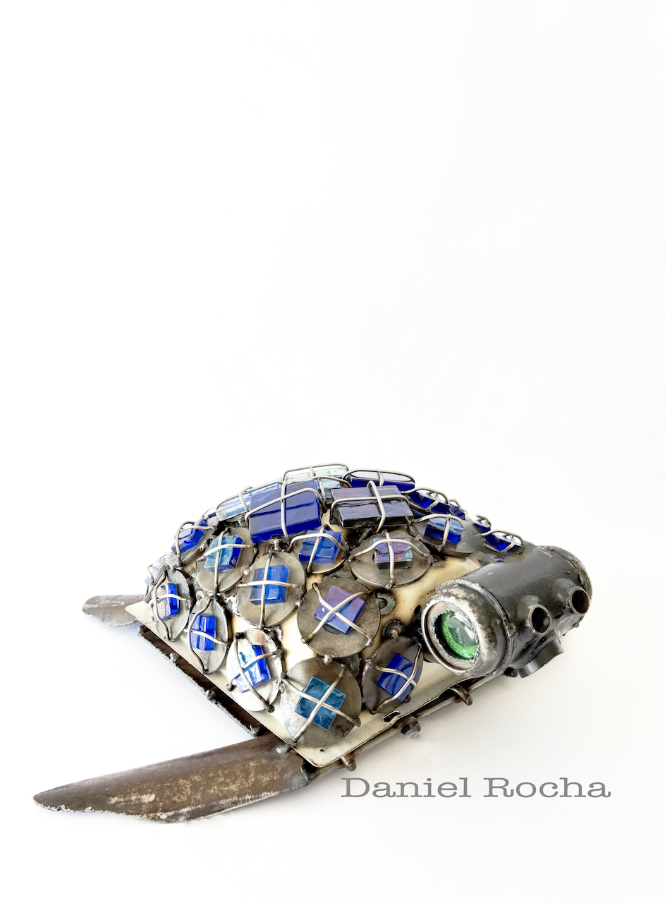 Houston-based metal sculptor Daniel Rocha transforms recycled scrap metal into intricate, one-of-a-kind masterpieces using precision TIG welding. His distinctive sculptures—ranging from rock ‘n’ roll-inspired musicians and creatures to metal roses, hot rods, choppers, and detailed planes—blend industrial grit with creative vision, giving new life to discarded materials like automotive parts, tools, and utensils.