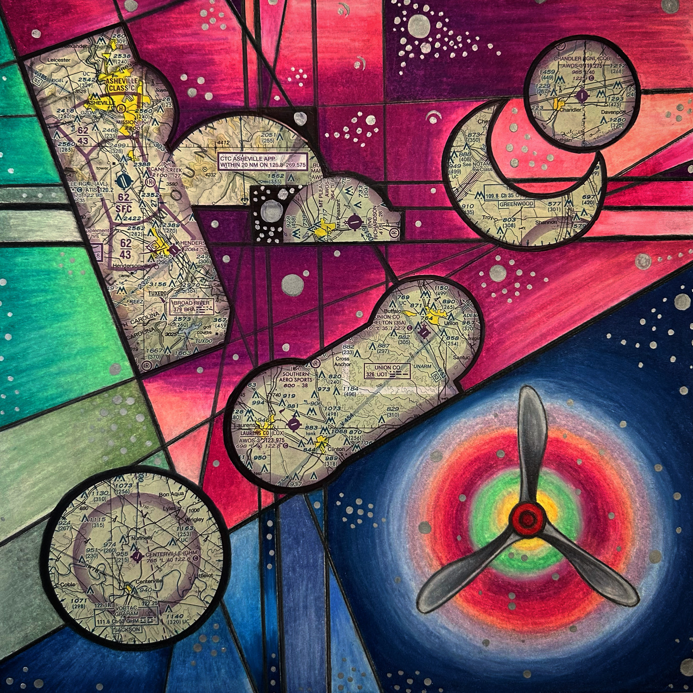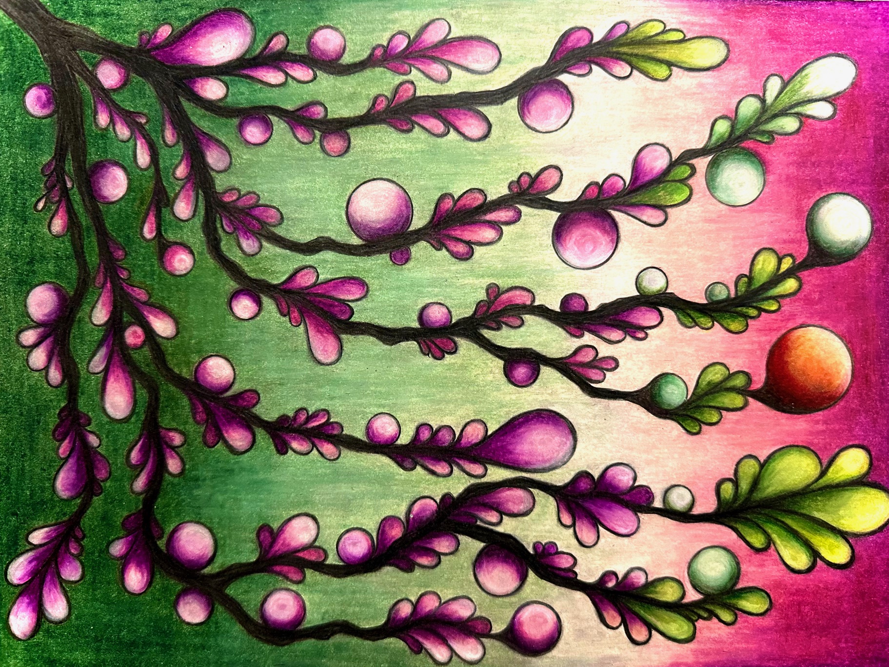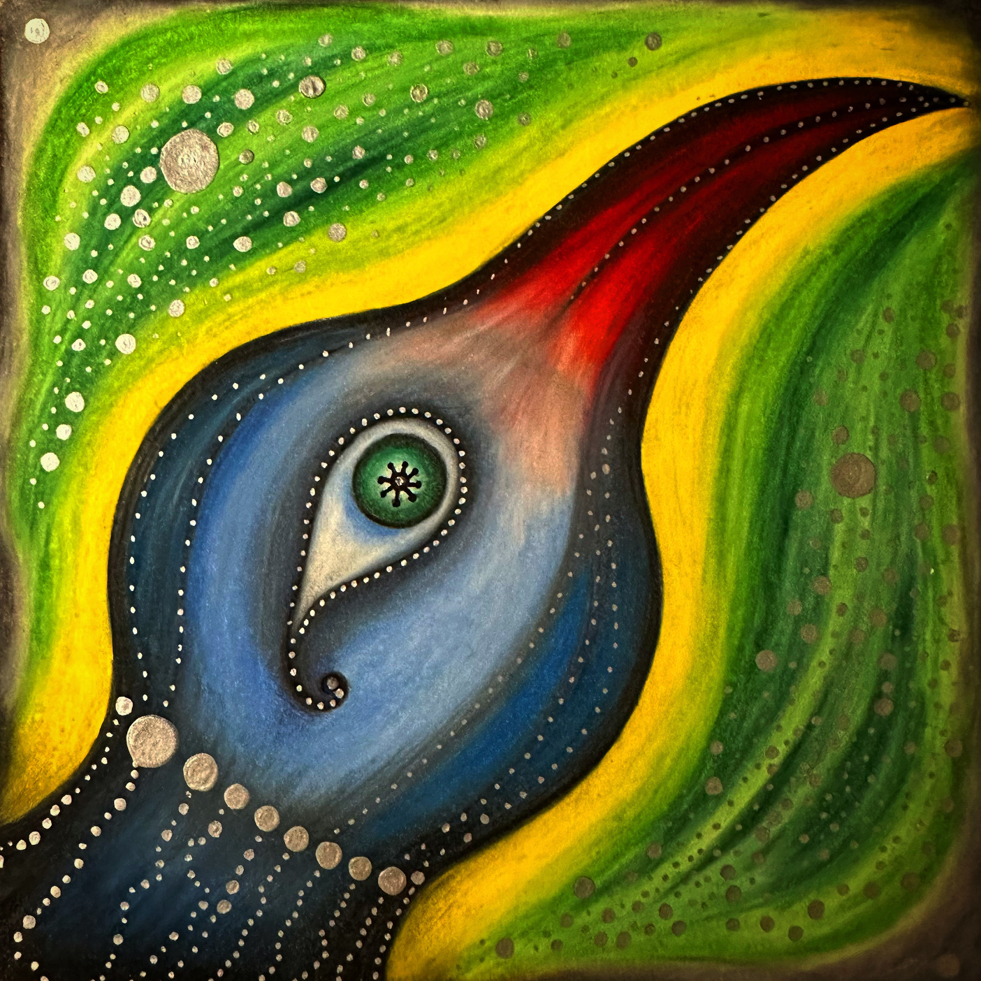 I create unique colored pencil drawings, which come out of love for bringing vibrant colors together and mixing them in abstract forms on a white page.