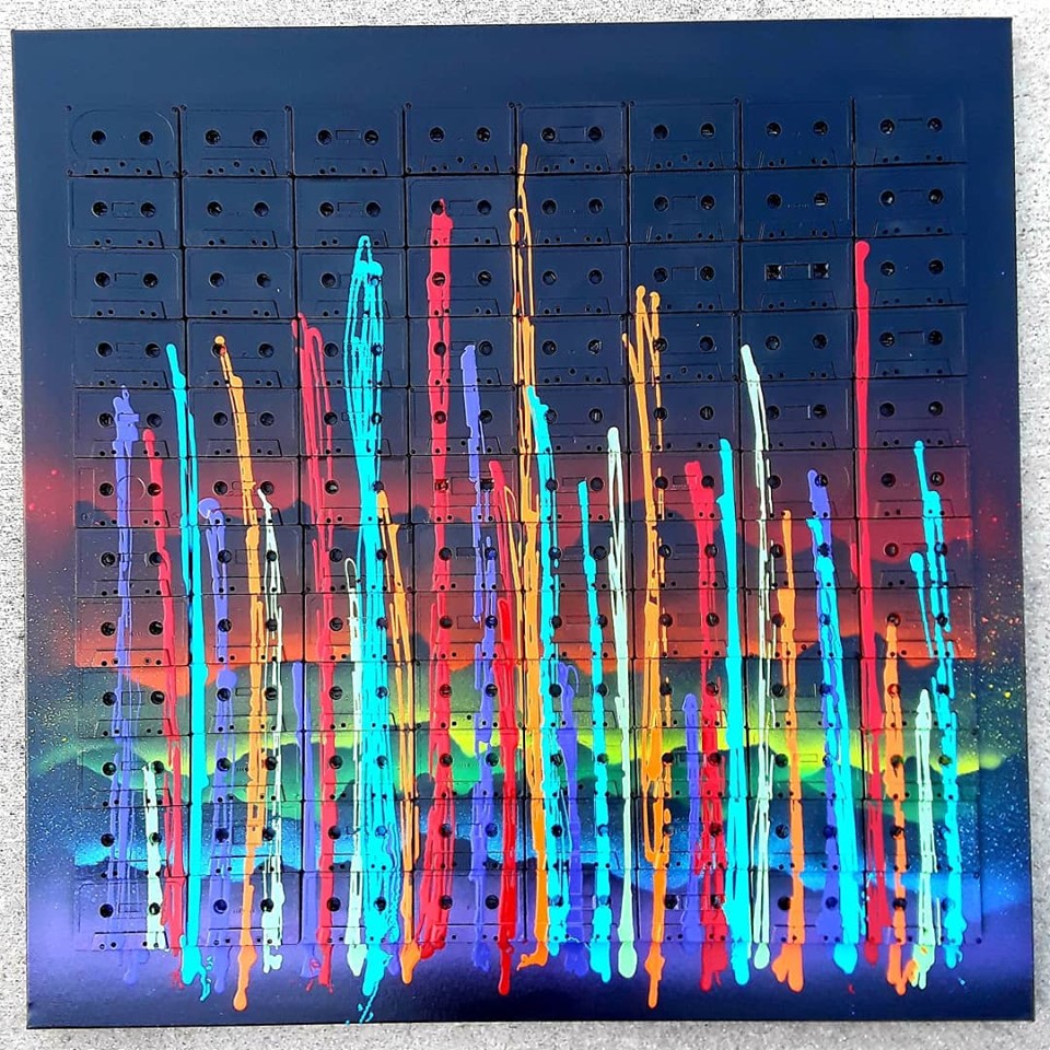 TAPEstry Art – Gerardo Saenz, a San Antonio-based artist, transforms discarded cassette tapes into vibrant fine art canvases, blending nostalgia and innovation through his signature TAPEstry Art. Read more below gallery