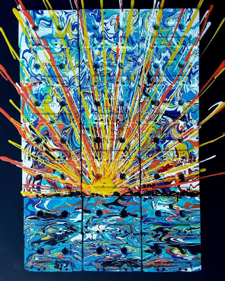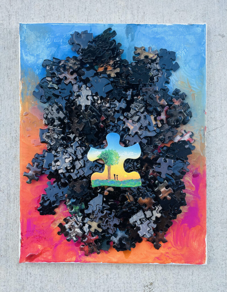 Gerardo Saenz, a McAllen native now based in San Antonio, redefines mixed media with his TAPEstry Art, creating fine art pieces from recycled cassette tapes that resonate with nostalgia and creativity. His vibrant abstracts, cityscapes, and signature “popart popsicles”—cassettes painted with bold, swirling colors on popsicle sticks—capture the essence of ’80s music and memories. Leaning into his fine art roots for the First Saturday Arts Market, Saenz’s evolving work continues to captivate, with pieces displayed in homes and offices worldwide, from Texas to Dubai.