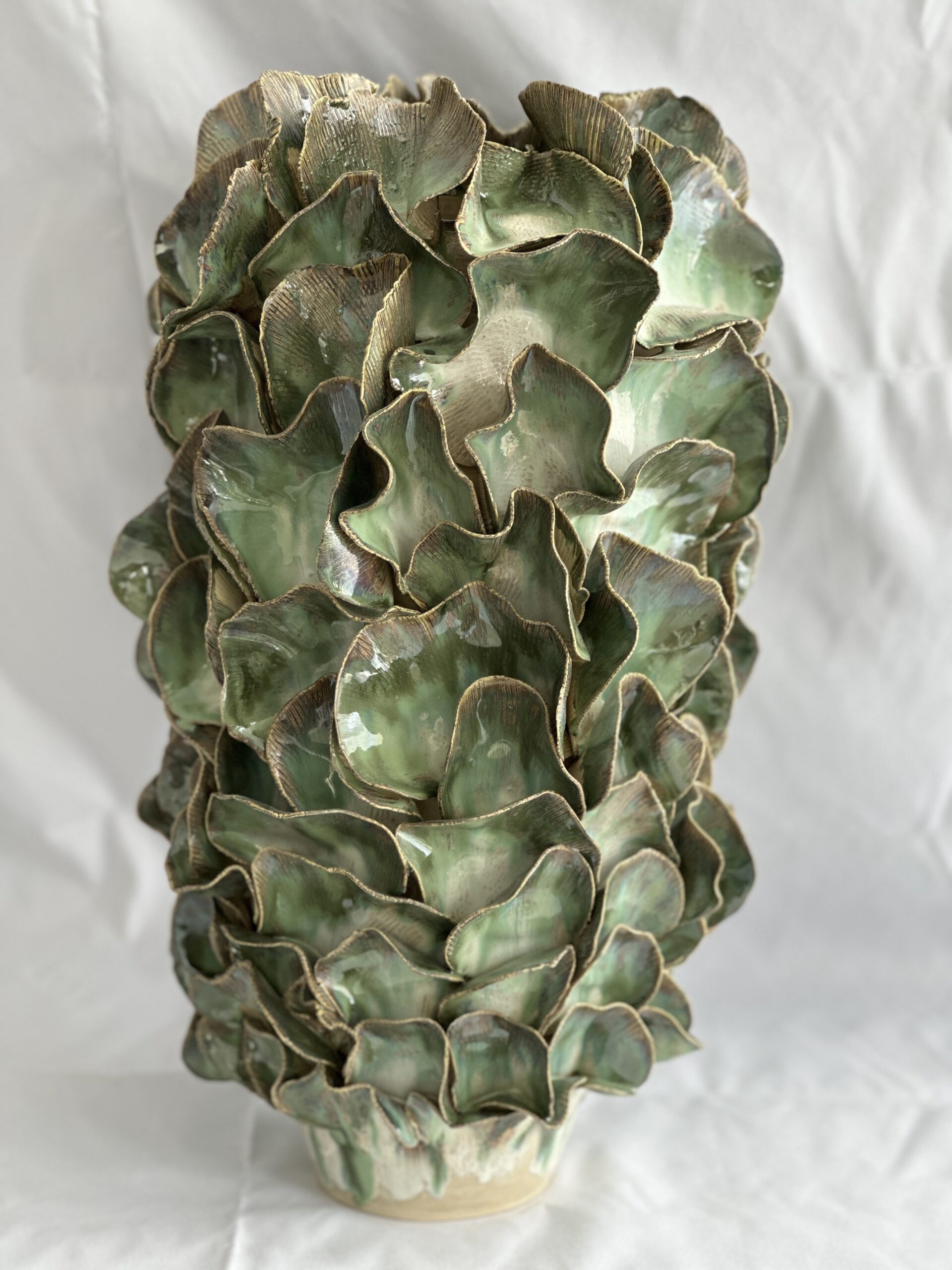 Love of art has always been a major part of my life. Growing up in a remote area in Lebanon, I spent my childhood on hillsides entertaining myself by using natural environment to make art, creating miniature villages using twigs, mud, pebbles, seashells and other flotsam. Bullet casings and exploded shrapnel afforded excellent miniature construction material. I started my career as a molecular biologist, but I never gave up art, filling up any free time creating something. After taking my first class in ceramics 10+ years ago, I fell in love and decided to give it 100% of my attention. Turning mud into a mug involves physics, chemistry, and cognitive constructional abilities, yet is ultimately controlled by the unpredictable whims of the kiln gods, … and playing with clay is cheaper than psychotherapy. I replaced scientific experimentation with experimentation with clay. I am constantly trying new techniques, materials, and glazes, giving rise to my eclectic style. There will always be something new and different in my collection. You can view current works by following me on Instagram or my website.