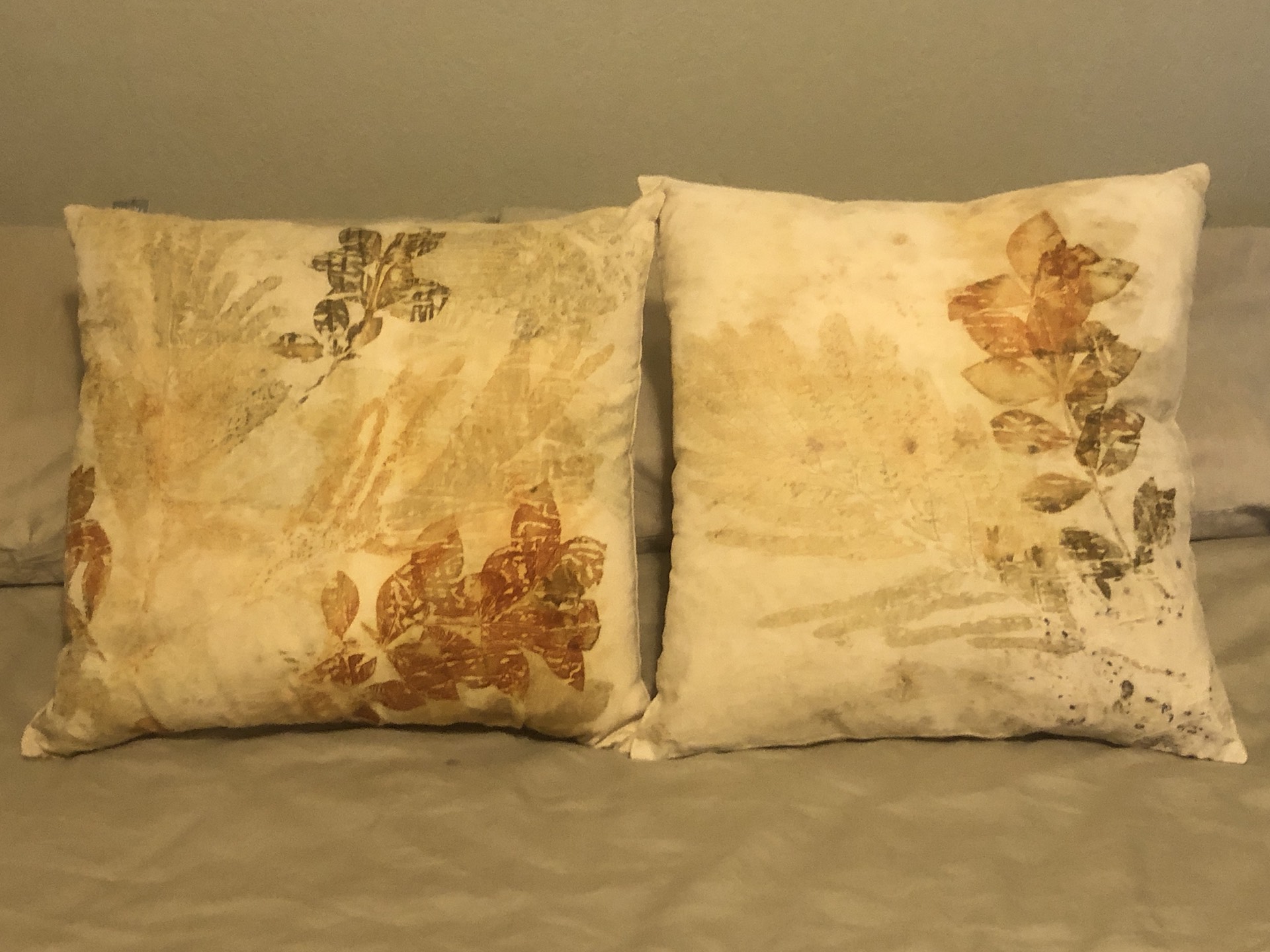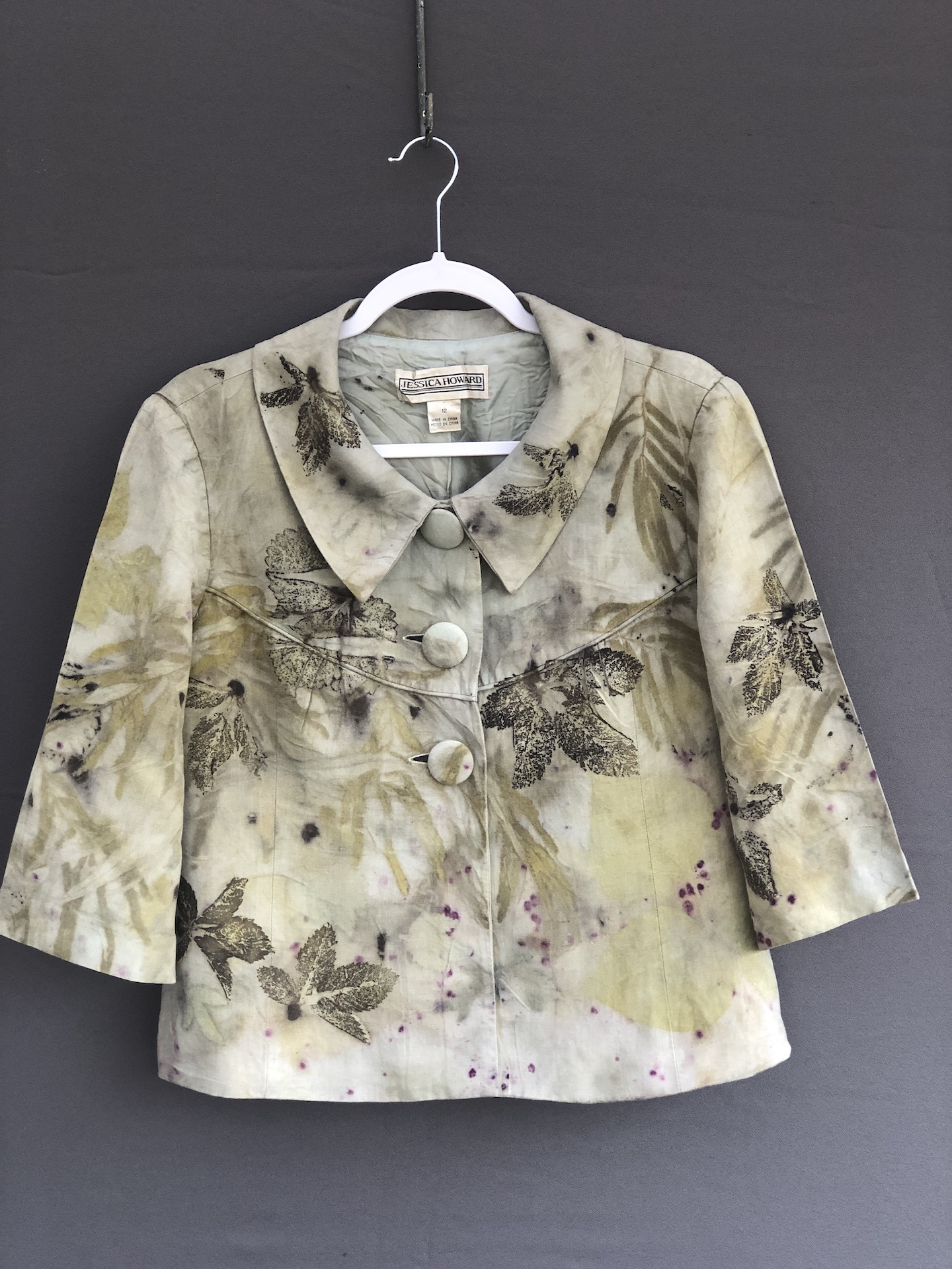 Botanical printing on silk scarves and up-cycled clothing, accessories and vintage table linens. Sewing and creating my own clothing and accessories from my printed fabric!