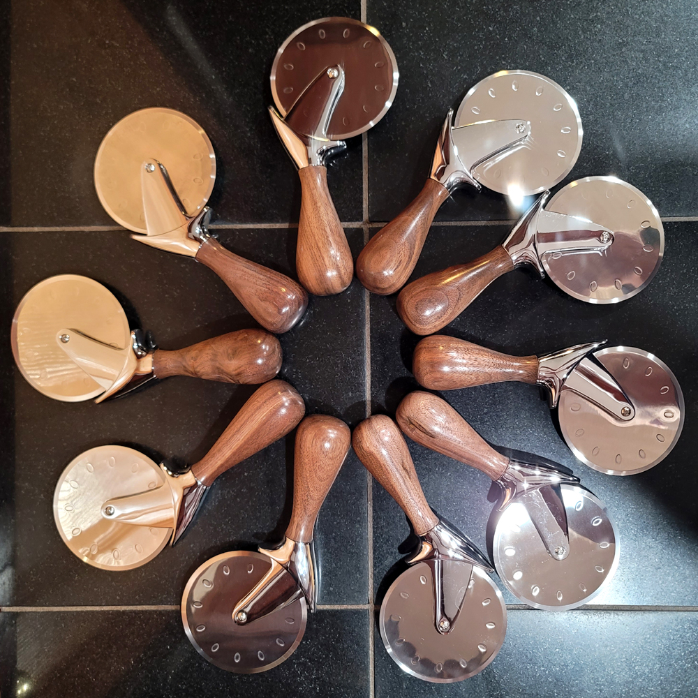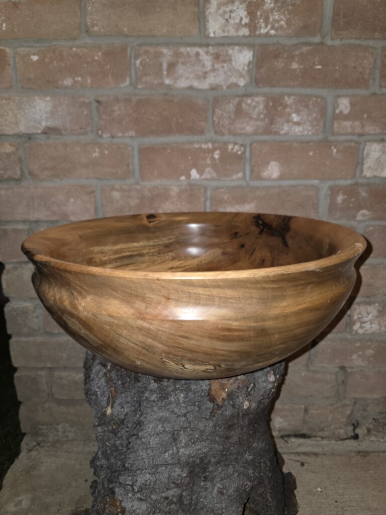 Hand-made wooden bowls, vases, goblets, urns (and more), many saved by the use of crack-filling epoxy, some decorated with stone inlay. Art Valet Interview in The Leader News