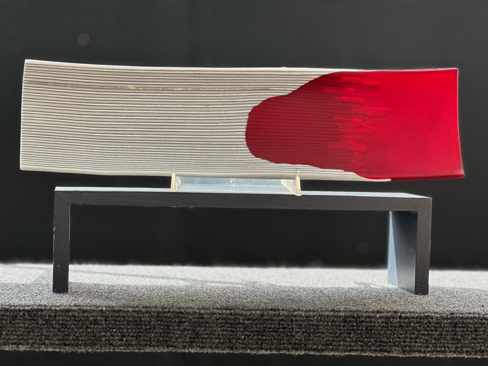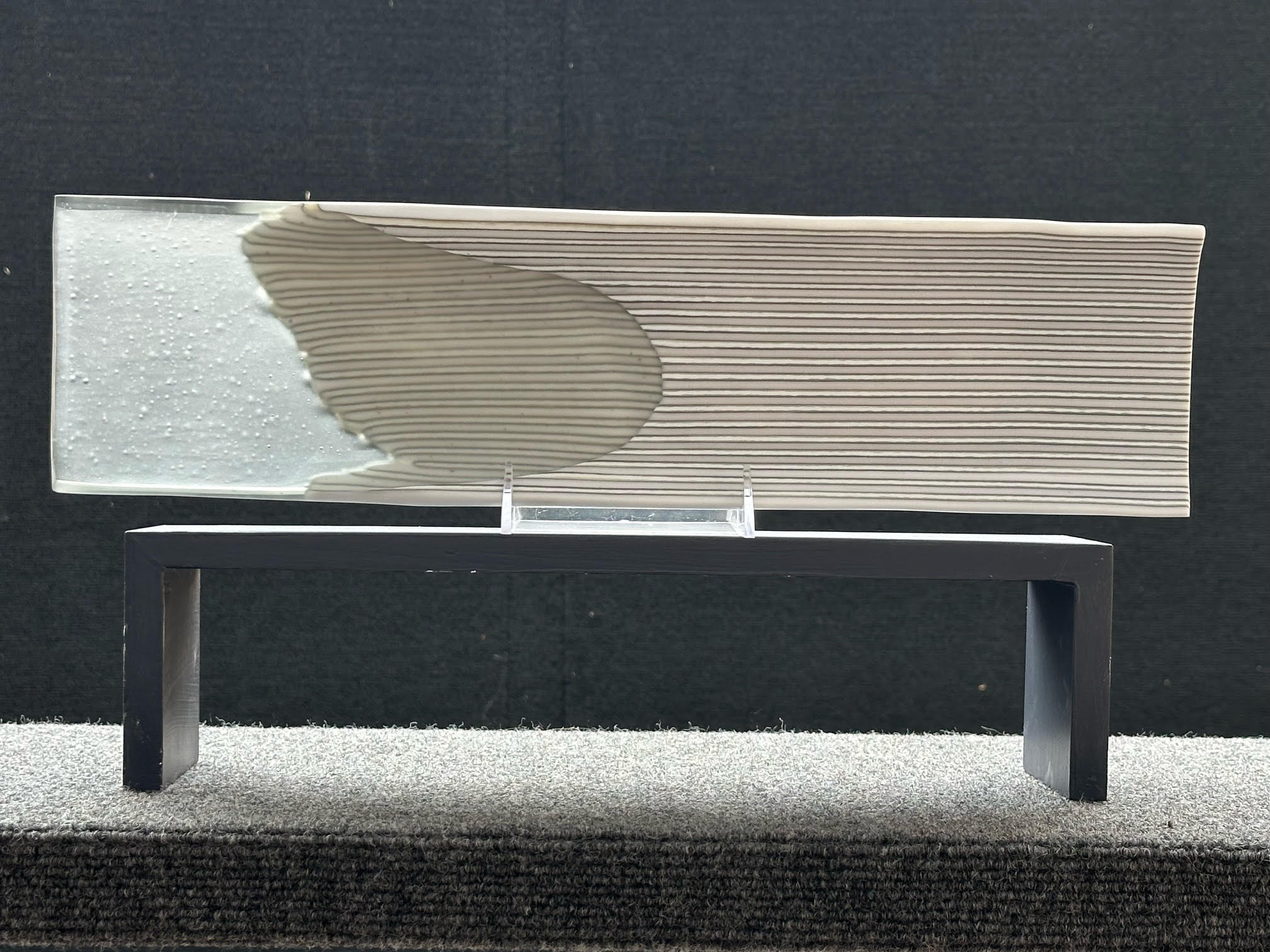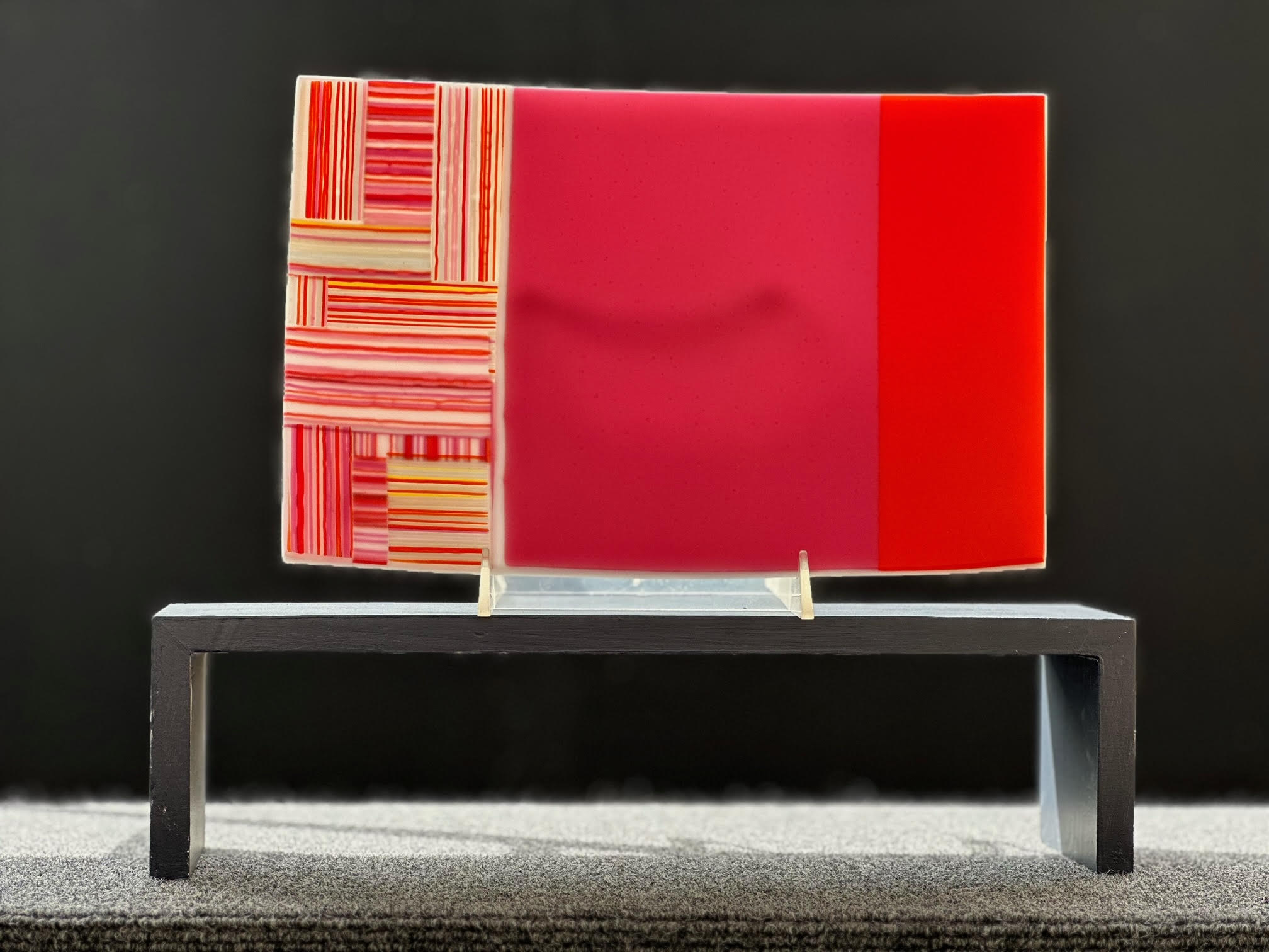 I create fused glass in my studio; beginning with sheets of glass, I cut, stack, and shape pieces and then fuse them together to create original functional art. Most are sandblasted and fire polished to give a matte finish to add an extra dimension to the art piece.